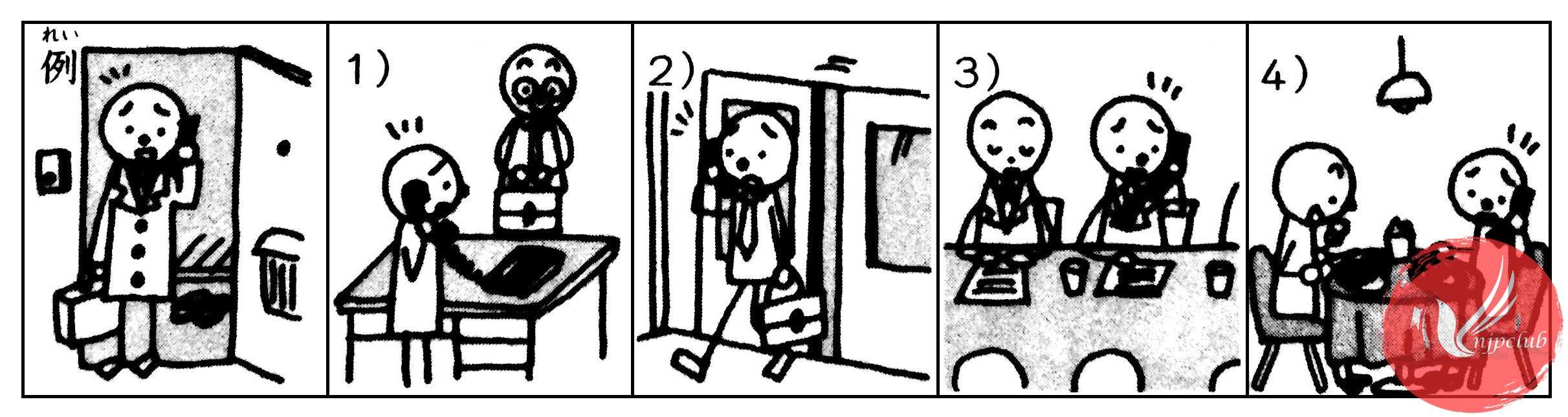 1)(お客さんが 来ました) ⇒