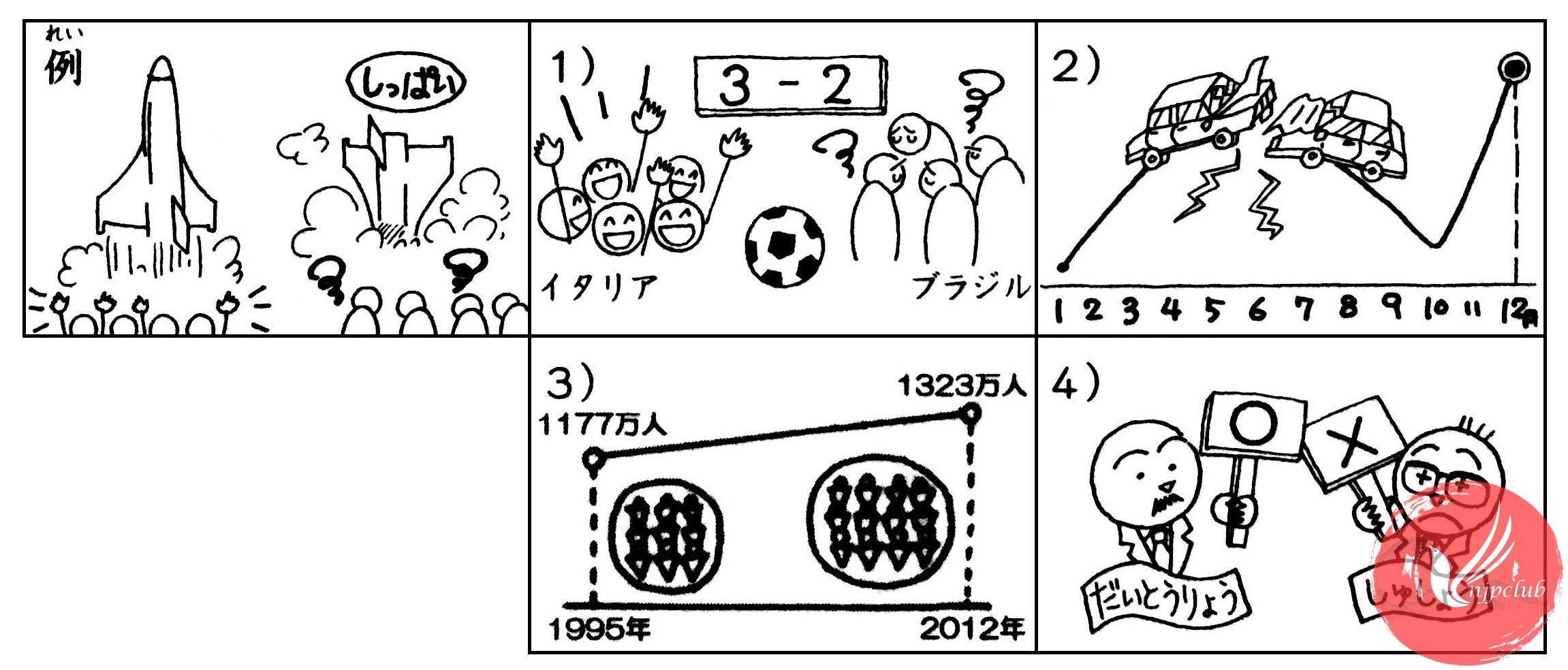 例: 天気予報を 見ました・あさって 台風が 来ます
