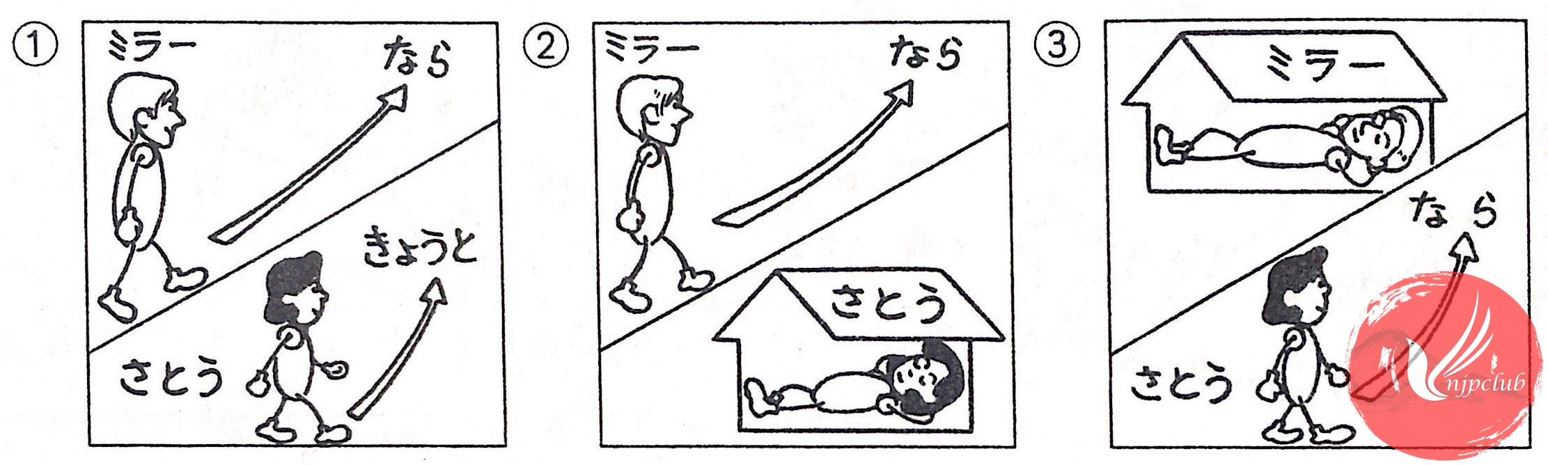 例:サントスさんは おととい 新幹線で 京都へ 行きました。