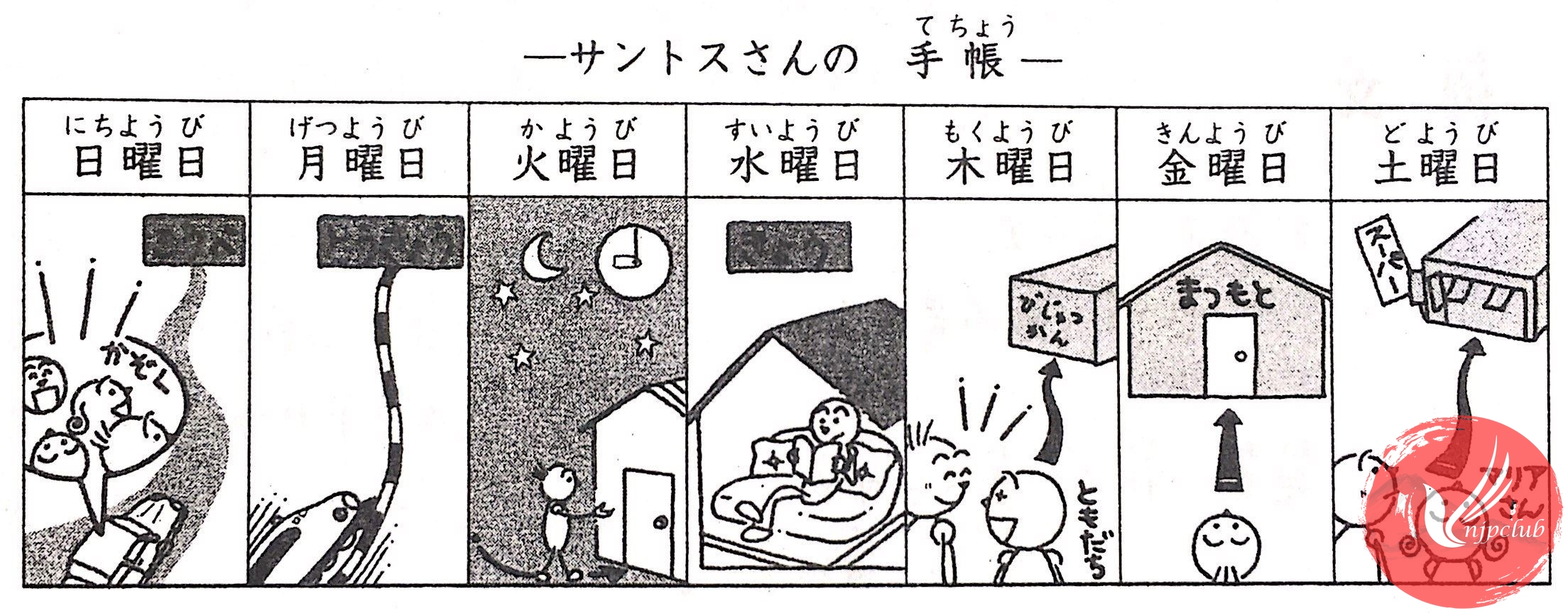5) サントスさんは 日曜日に_______。