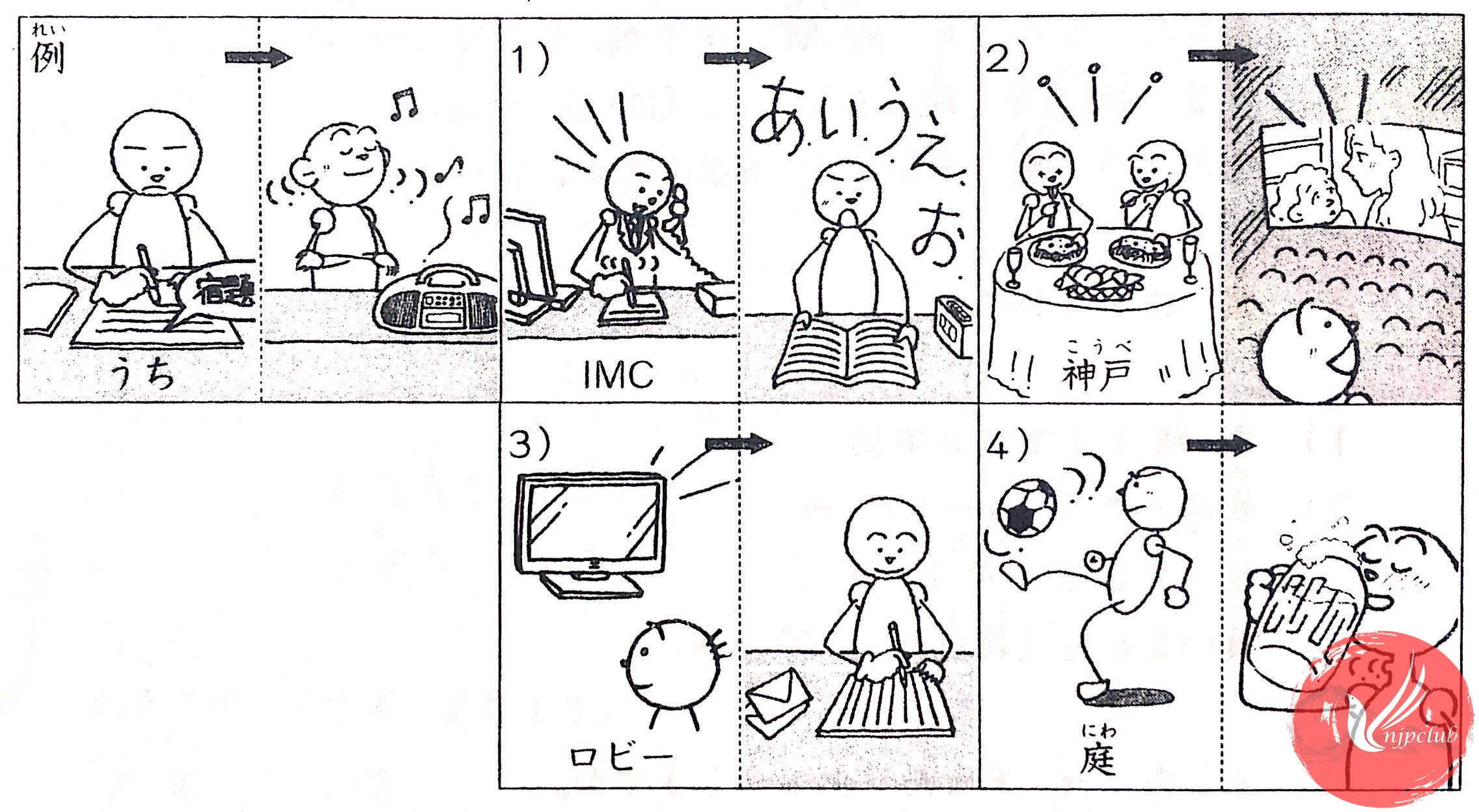 4) 日本語を 勉強しました(大学) ⇒