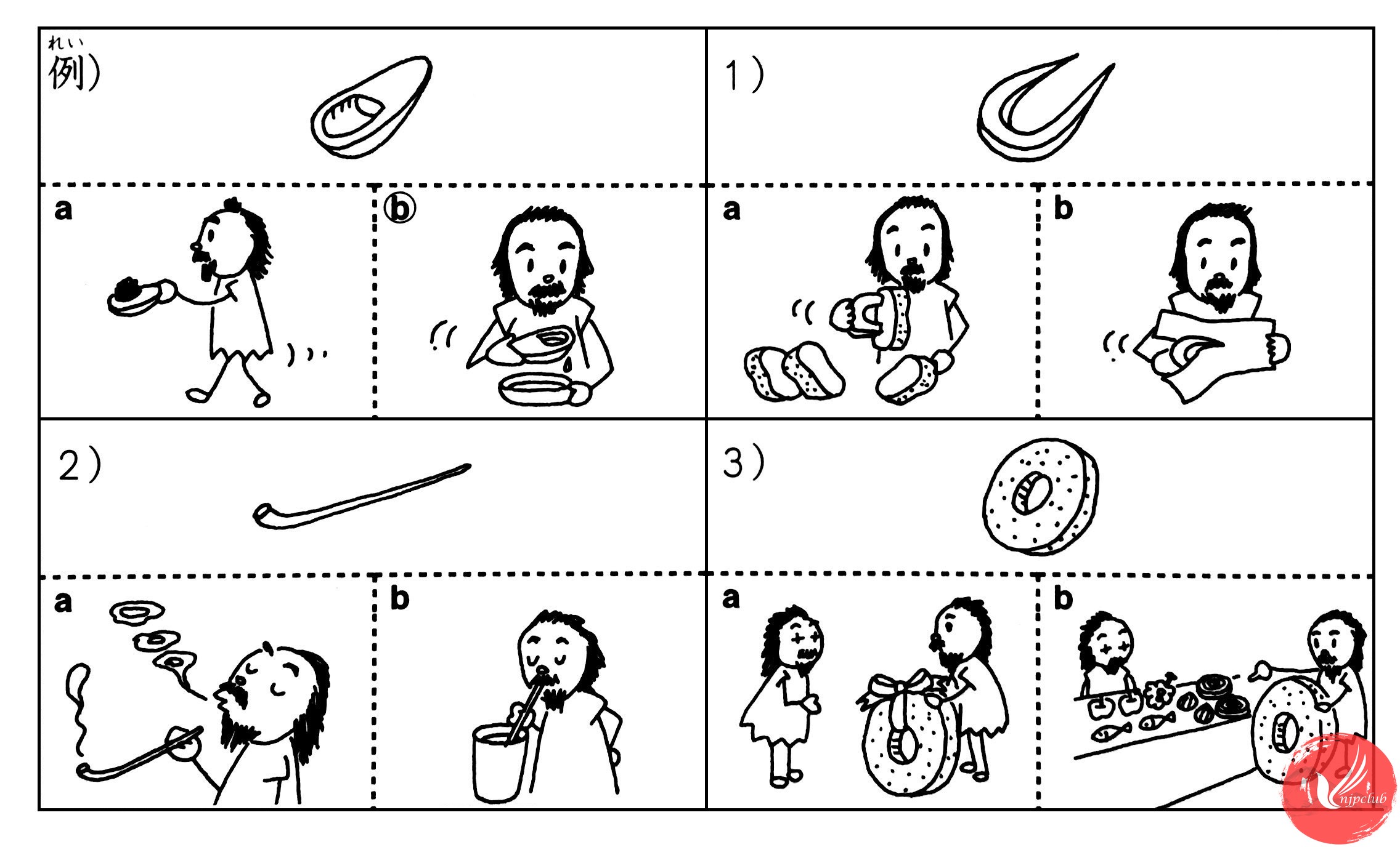 (むかし)(ひと)は これで ごはんを ()べました。