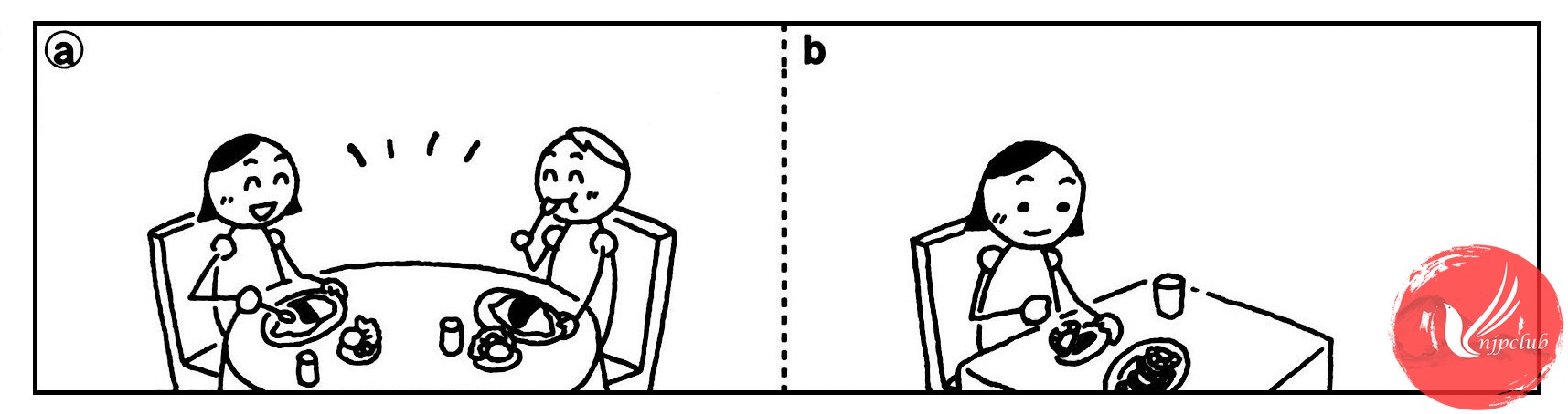 じゃ、いっしょに ()べませんか。