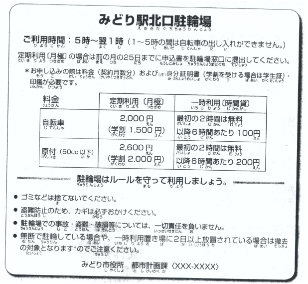 例えば駐輪場の利用案内にはこんな言葉が出てきます。