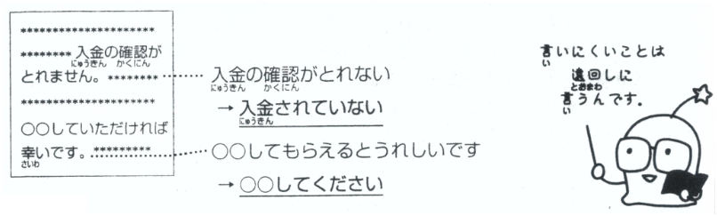 | 4. | BさんはAさんの払い込み用紙を間違って捨ててしまった。 |