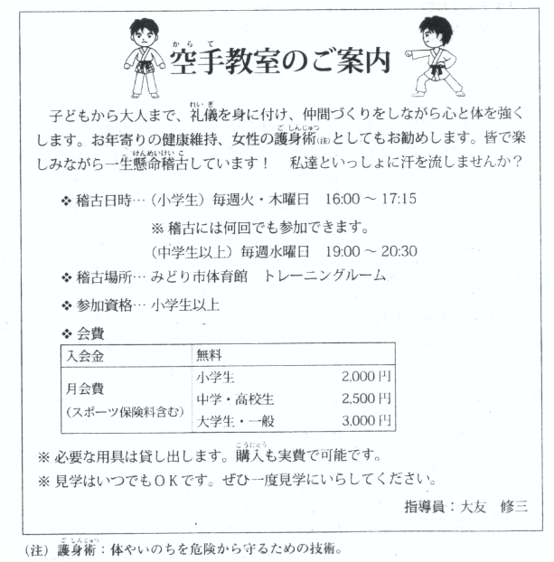 | 問1 | 小学校が週に2回ずつ空手の稽古に通う場合、毎月払うお金はいくらになるか。 |