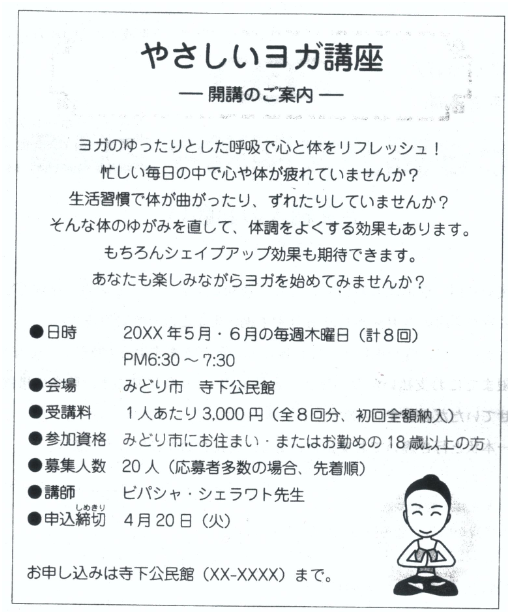 次の2の文書はどちらも市民講座の案内である。読んで、下の問いに対する答えとして最もよいものを1.2.3.4から一つ選びなさい。