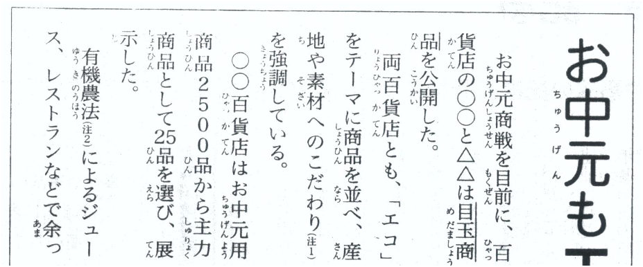 | 客: | あら、もうお中元の商品が並んでるのね。 |