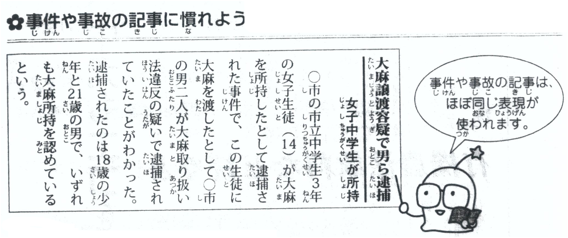 | 1. | Aさんは飲酒運転による交通事故の記事を読んでいる。 |