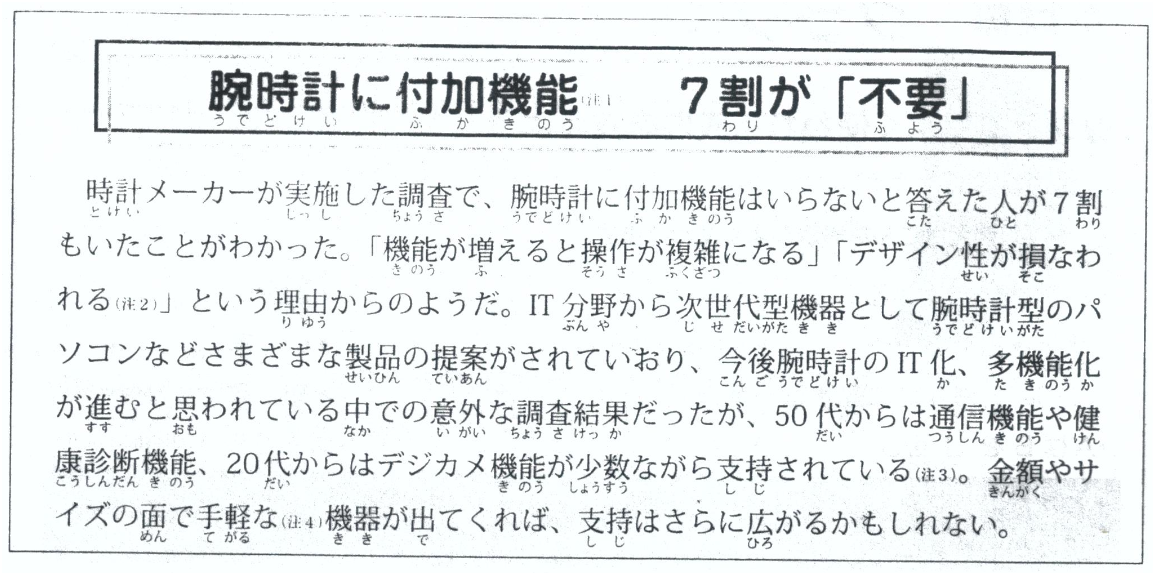 | 5. | 現在、時計に通信機能がついているものはない。 |