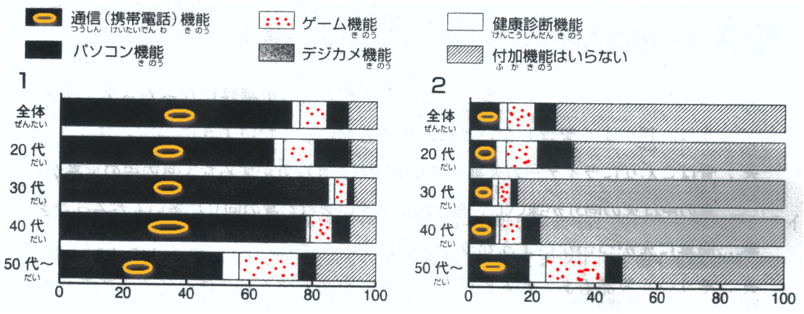 Đề án của nhiều sản phẩm như máy tính hình dạng đồng hồ đeo tay như là thiết bị của thời đại sau đã được thực hiện từ lĩnh vực IT, và đã có kết quả điều tra ngoài dự kiến trong khi sự IT hóa của đồng hồ đeo tay về sau, sự đa chức năng hóa được cho là sẽ tiếp tục phát triển, và chỉ được một số it người ủng hộ là khoảng 50 tuổi trở lên thì là chức năng thông tin hay kiểm tra sức khỏe, 20 tuổi trở đi là chức năng chụp ảnh kỹ thuật số