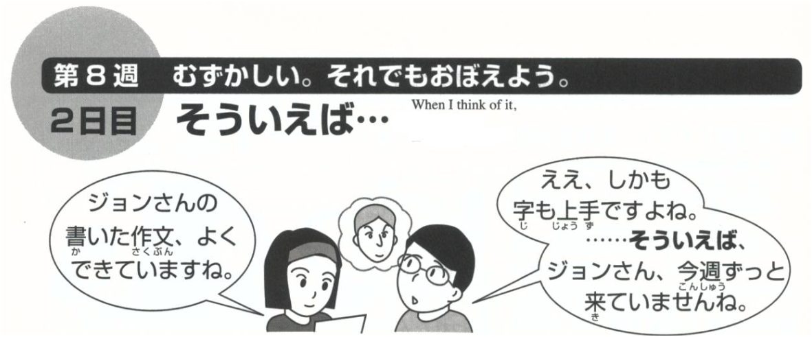 「今日の授業、おもしろかったね。」 「うん、すごくためになった。それはそうと、今度の試験いつだっけ?」 Buổi học hôm nay thú vị nhỉ. Ừ, học được khá nhiều. À mà kì thi lần tới là khi nào vậy nhỉ? |