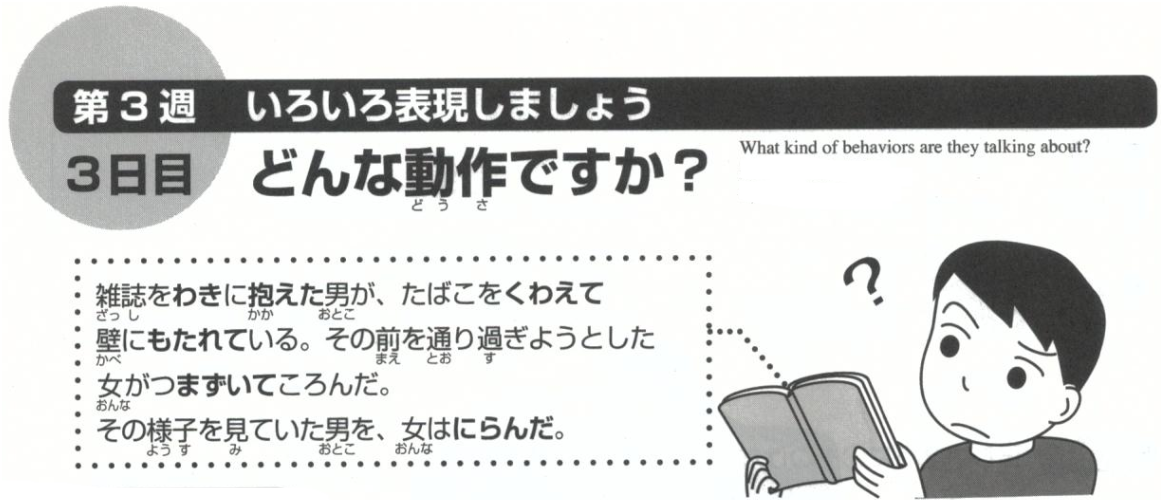 3.この道はせまくて、車と車が( すれちがう )のは大変だ。