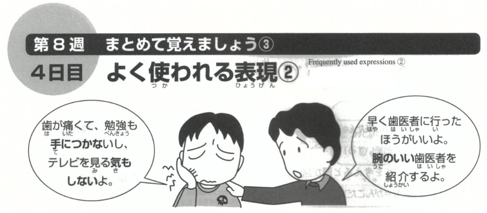 | はがいたくてべんきょうがてにつかない | 歯が痛くて勉強が手につかない | răng đau quá nên tôi chẳng học hành gì được | |