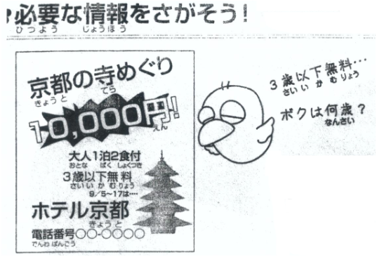 | 問2 | この広告で値段がわからないのはどれか。 |
