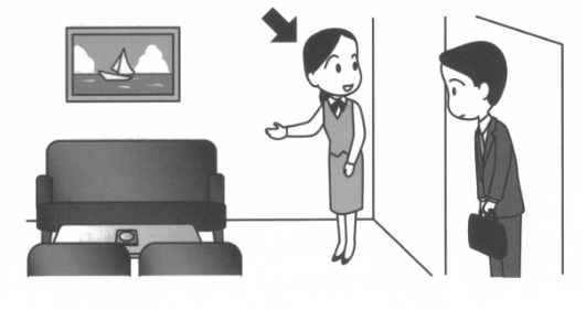 ・A「どうぞお上がりください/どうぞお入りください。」 B「おじゃまします。」 A「どうぞおかけください。」 |
