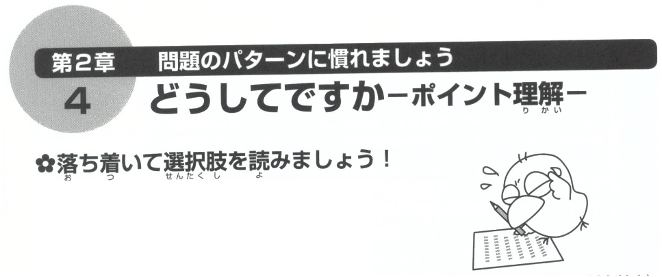 ①最初の説明と質問を聞いたあと、選択肢をじっくり読みましょう。