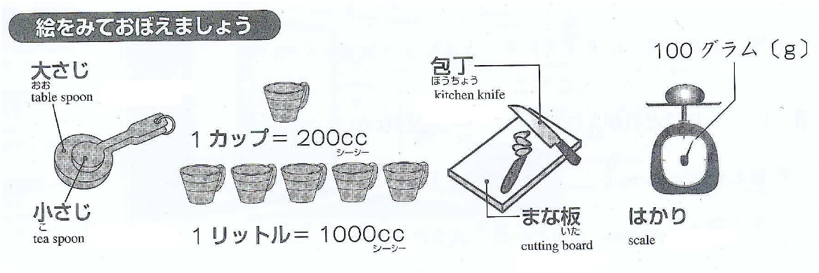2.材料(ざいりょう)を( __ )で(はか)りましょう。