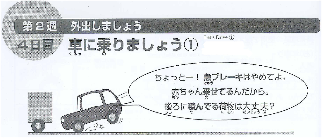 | バックミラーでかくにん(を)する | バックミラーで確認(を)する | xác nhận nhìn gương chiếu hậu | |