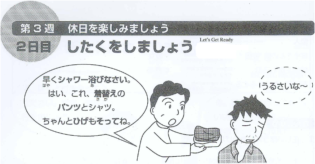 あさのしたくをする (あさ)のしたくをする   sửa soạn đi làm (học)