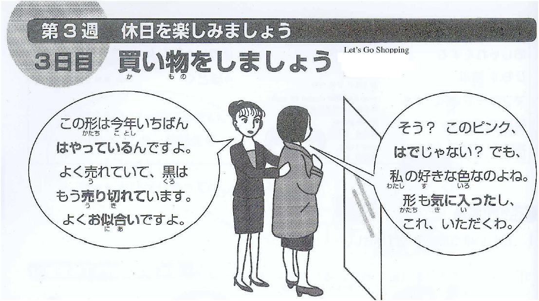 2.「その()今年(ことし)はやってますね。よく(似合(にあ)って)いますよ。」