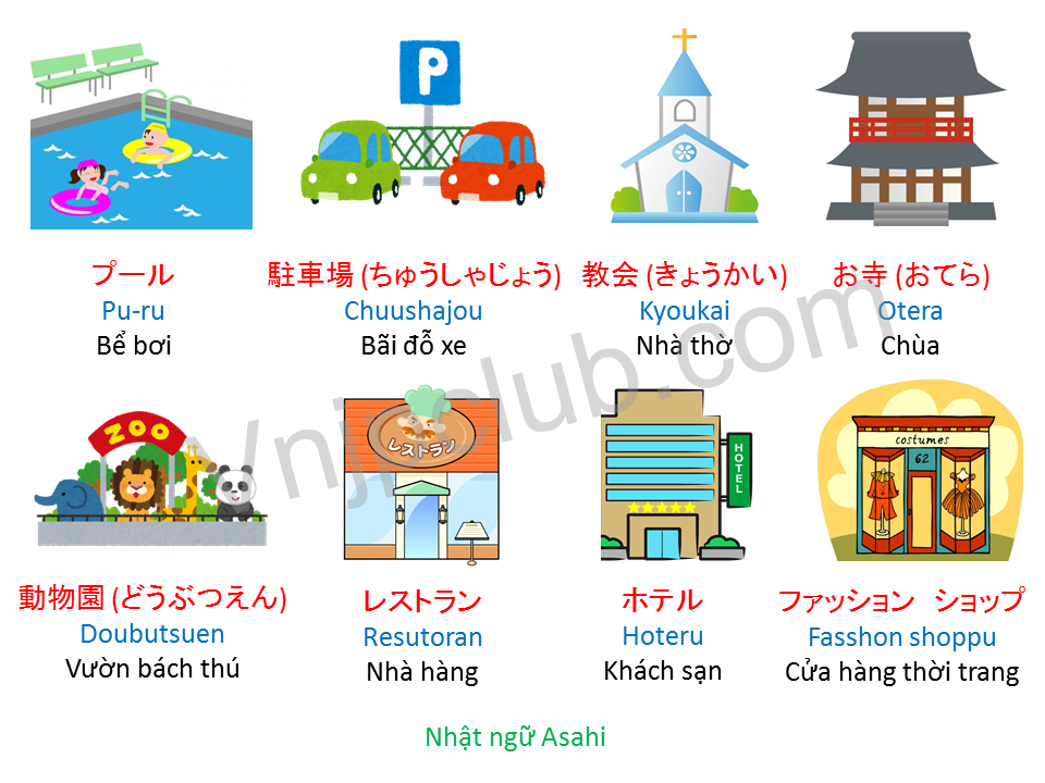 Tổng hợp các từ vựng địa điểm quen thuộc trong cuộc sống hàng ngày, giúp bạn dễ dàng nhận biết và sử dụng tiếng Nhật một cách tự nhiên trong giao tiếp và sinh hoạt.