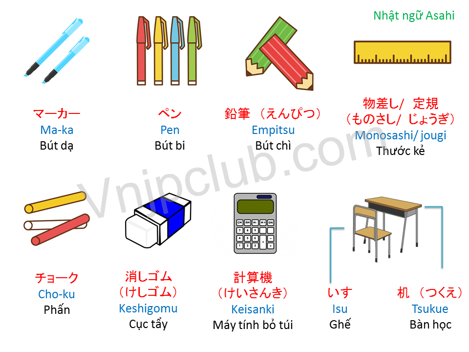 | 消しゴム (けしゴム) | Keshigomu | Cục tẩy |