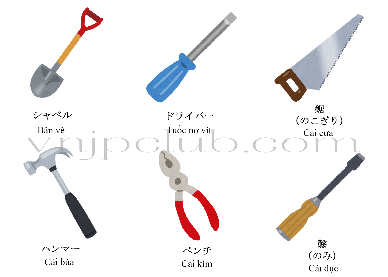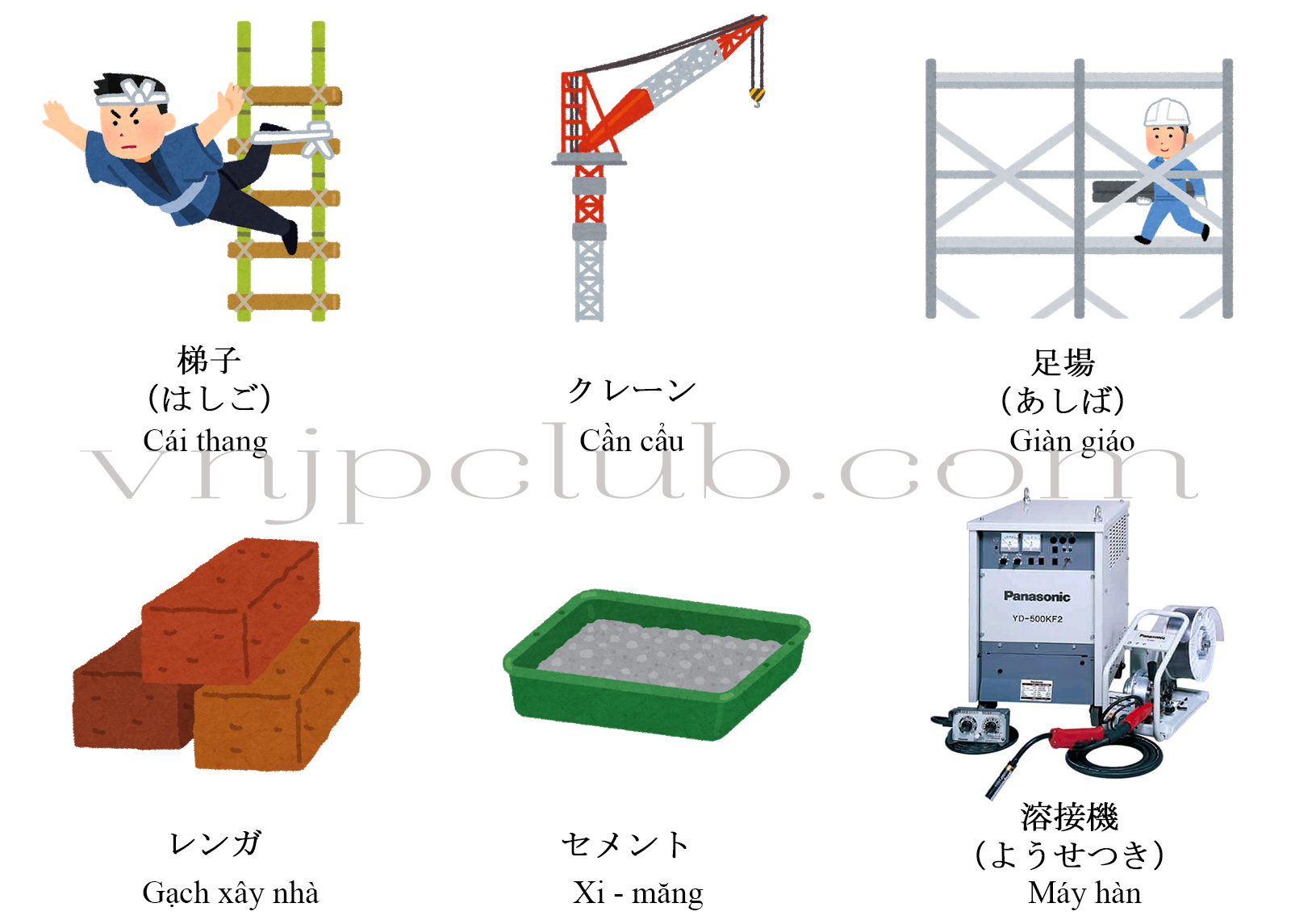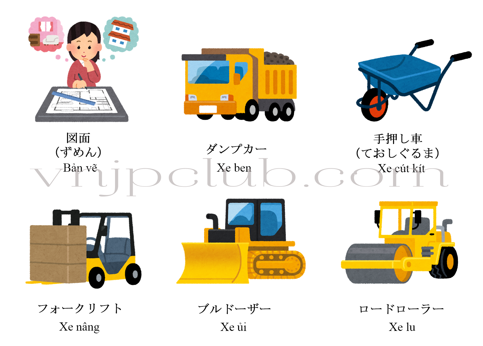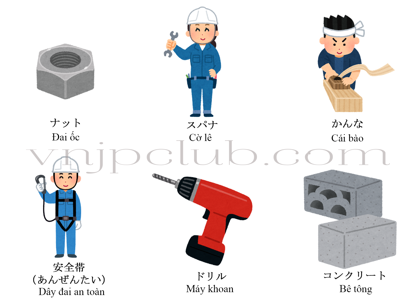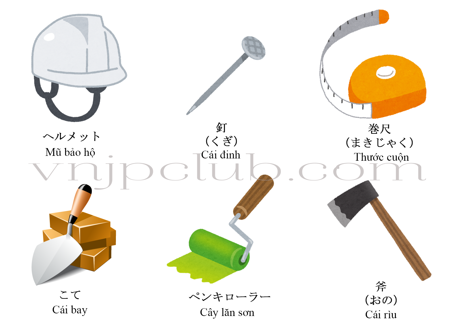 Danh sách từ vựng tiếng Nhật chuyên ngành xây dựng với các dụng cụ, máy móc và vật liệu quan trọng giúp nâng cao vốn từ và sử dụng chính xác trong thực tế công trường.